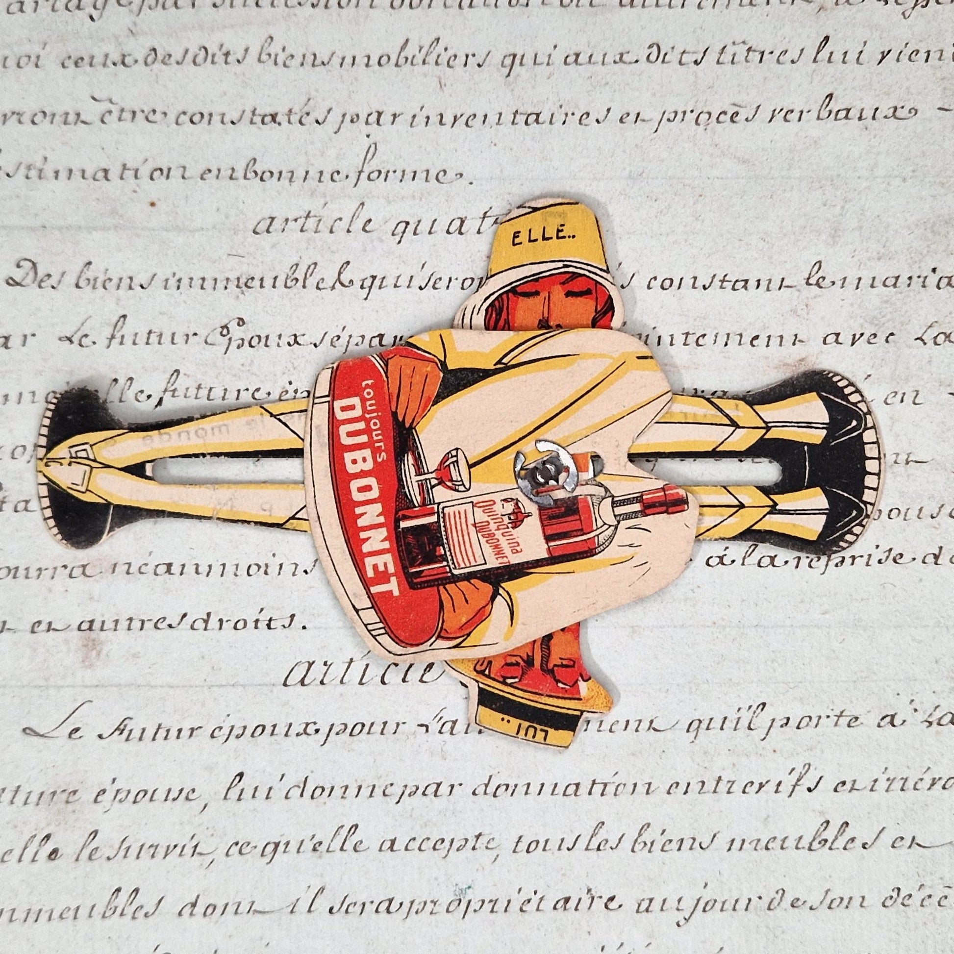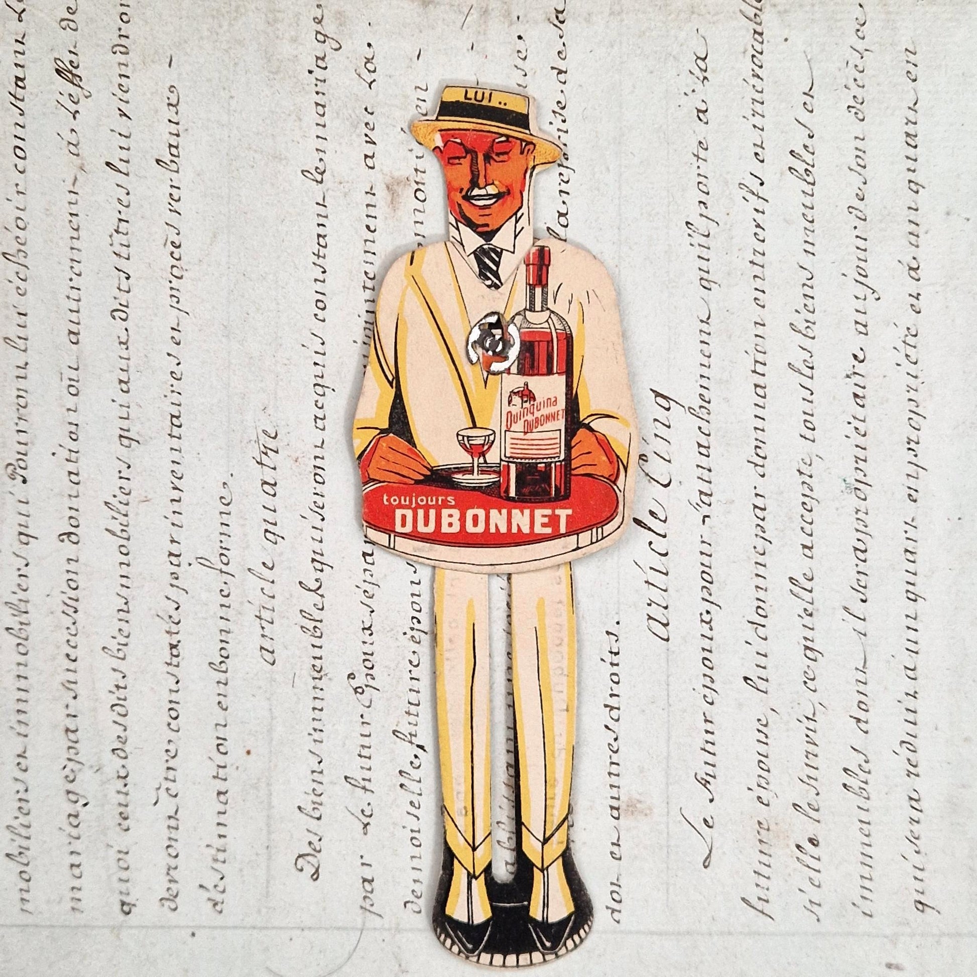 Support publicitaire typique de l’univers Dubonnet, mêlant graphisme Art Déco et animation mécanique, particulièrement recherché pour les collections de publicité de bistrot et d’alcools anciens.