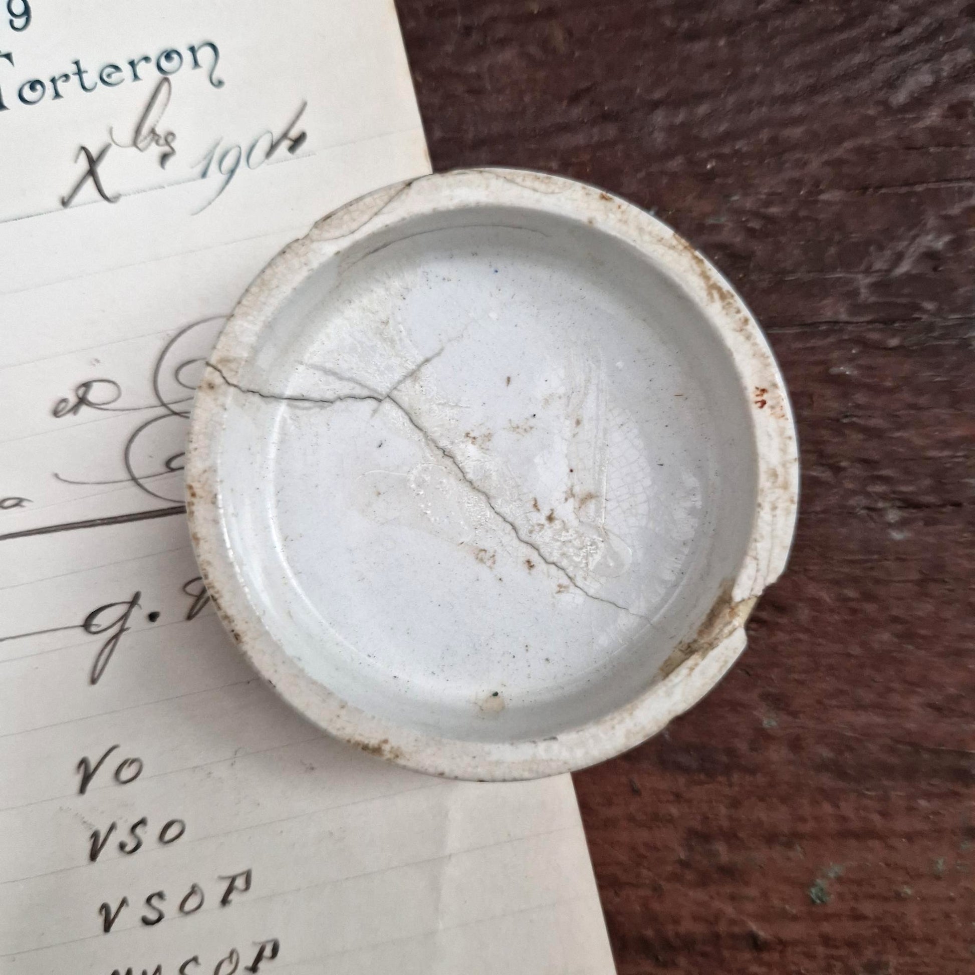 Charmant témoin de la cosmétique anglaise ancienne, recherché pour compléter un pot d’origine ou pour une présentation décorative dans une vitrine d’apothicaire, de pharmacie ou d’épicerie fine d’inspiration britannique.