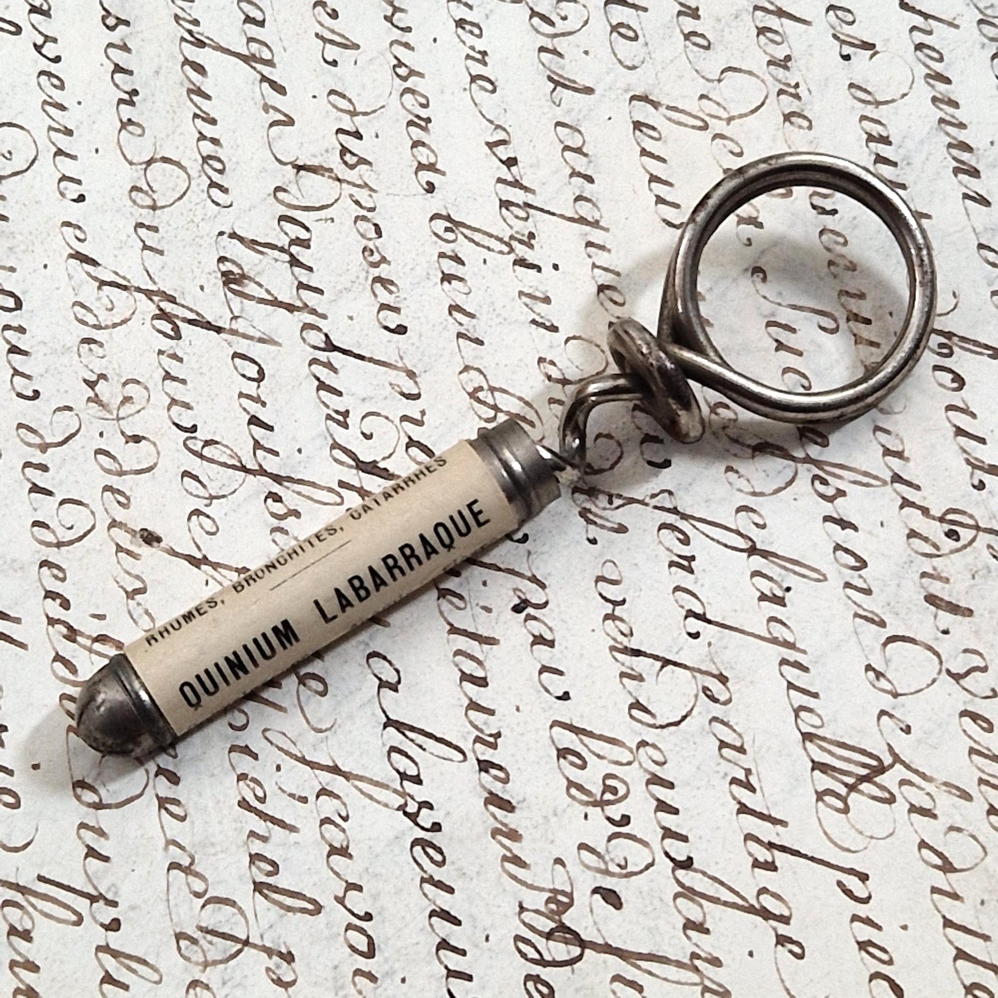 Tire-bouchon publicitaire ancien mêlant univers du vin et de la pharmacie, idéal pour une collection de curiosités médicales, d’objets publicitaires ou de bar ancien.